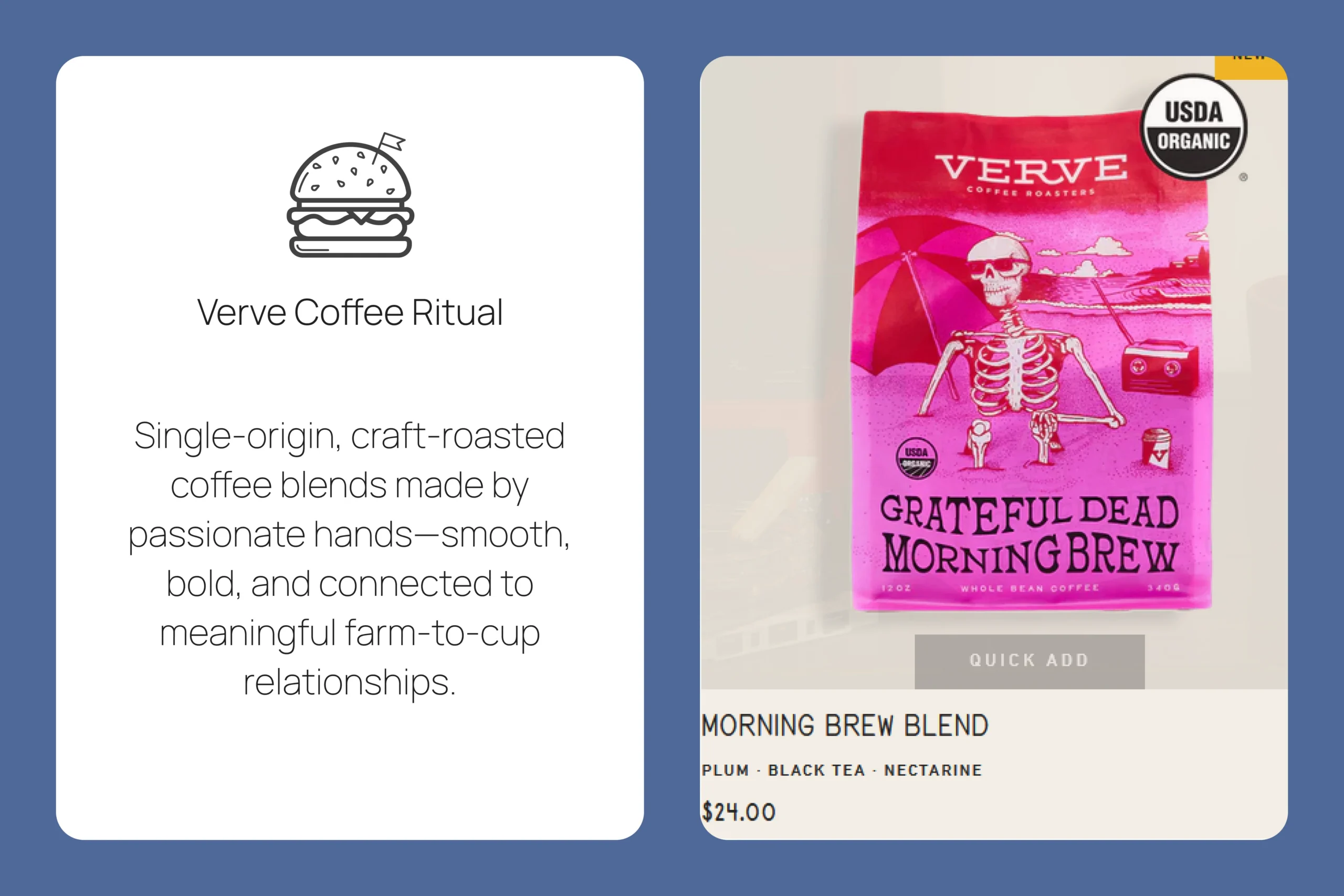 Verve Coffee Roasters is a leading name in California’s third-wave coffee movement, celebrated for its direct-trade sourcing, innovative roasting methods, and vibrant café culture. While their physical spaces offer an immersive brand experience, their digital storefront needed to echo the same level of care, energy, and craftsmanship.
