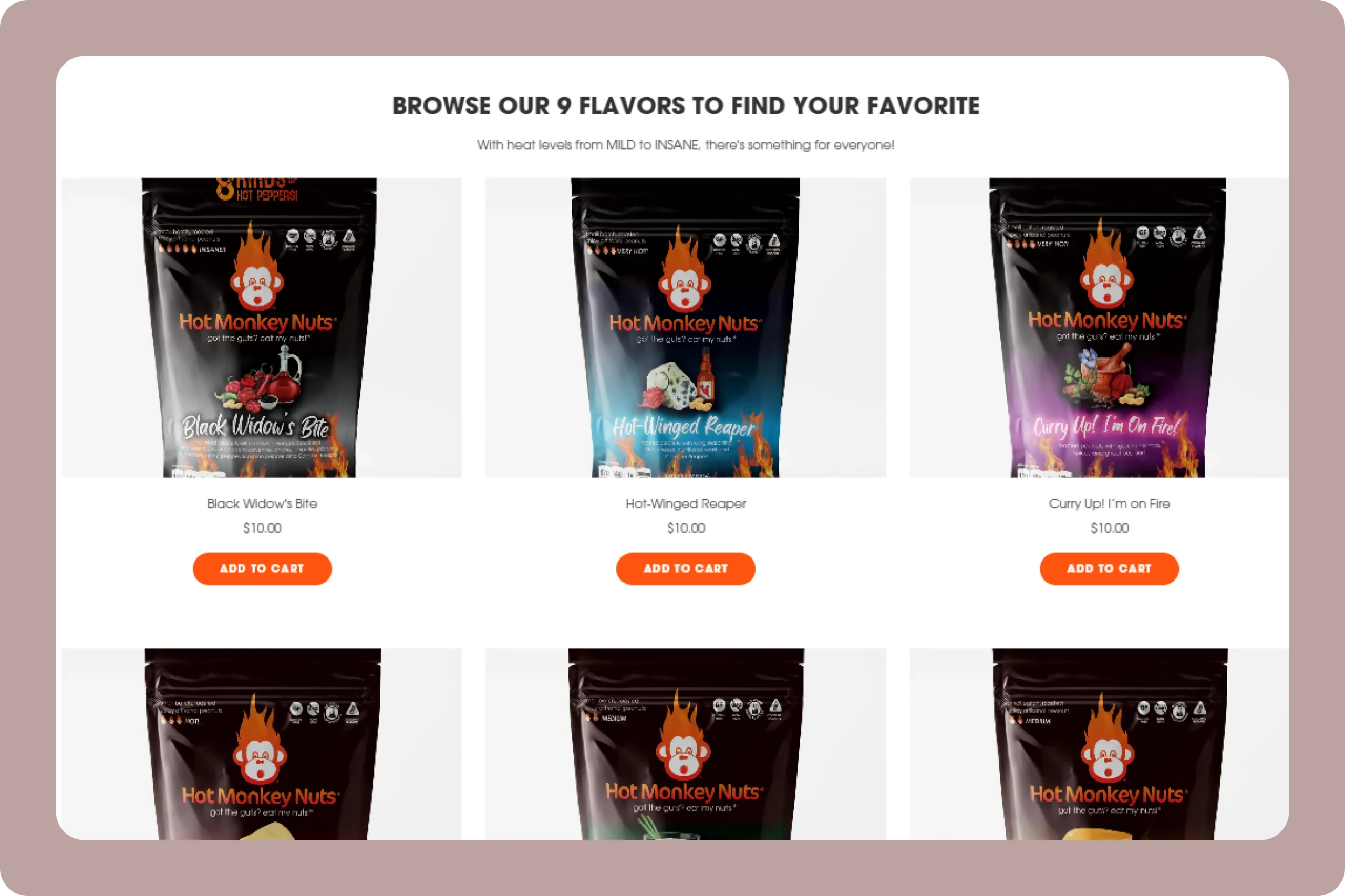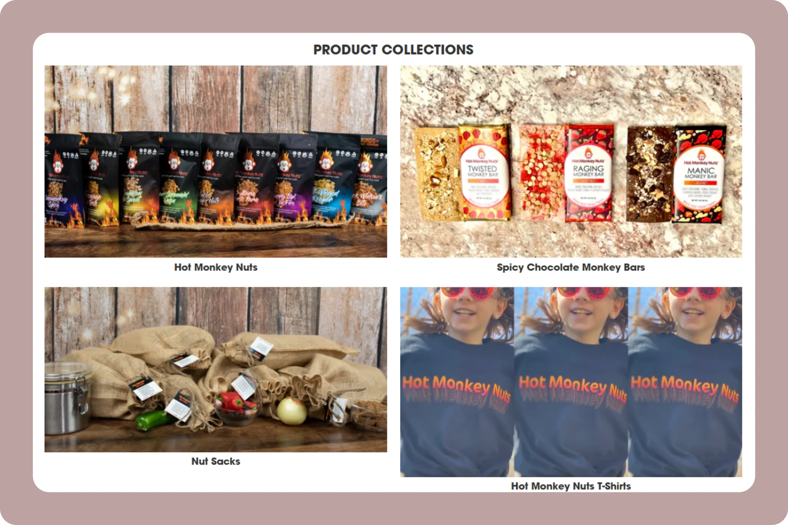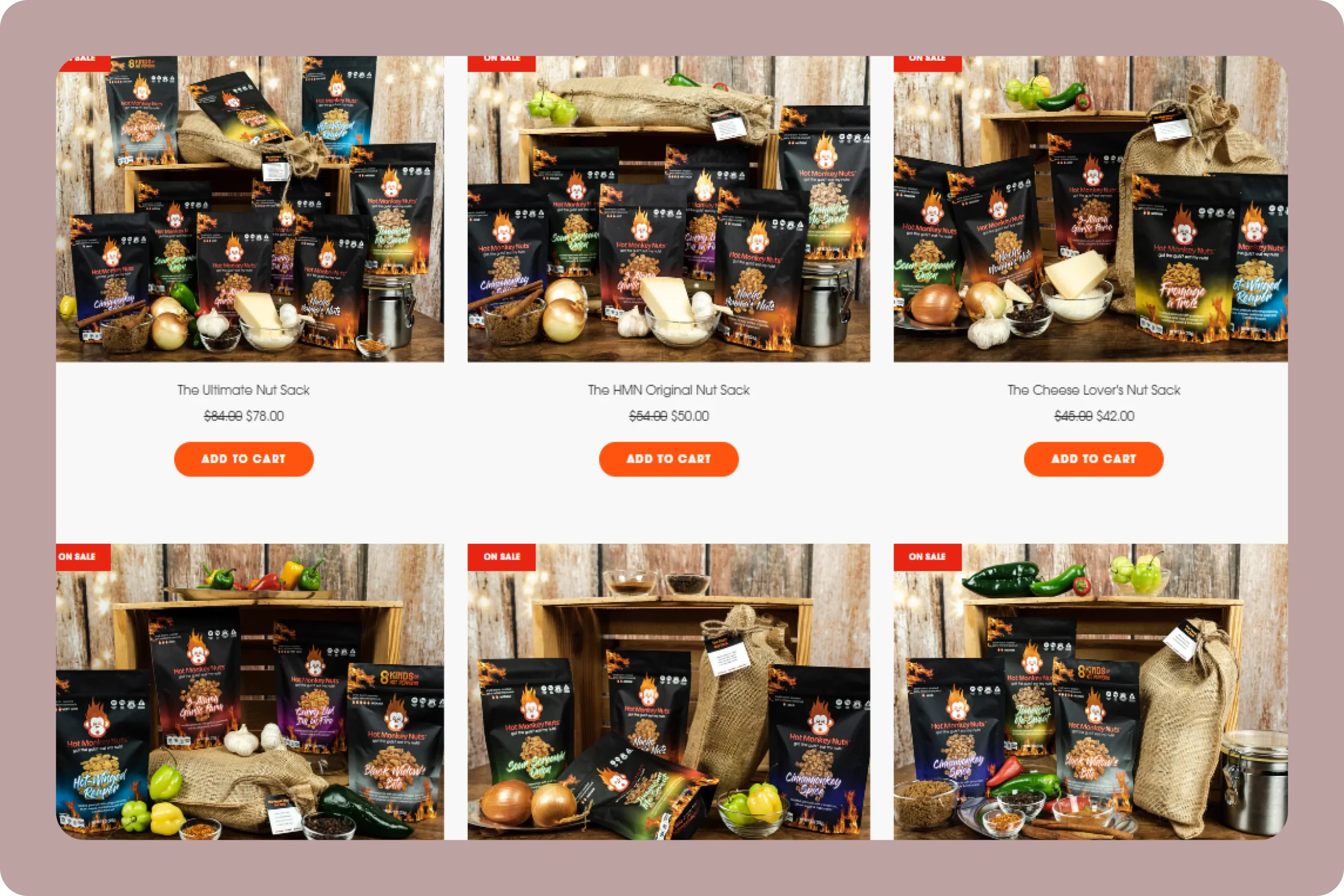 A digital snack with serious kick. For Hot Monkey Nuts, we crafted a Shopify storefront that delivers big flavor and big attitude—capturing the heat-loving spirit of a bold snack brand that doesn’t hold back.