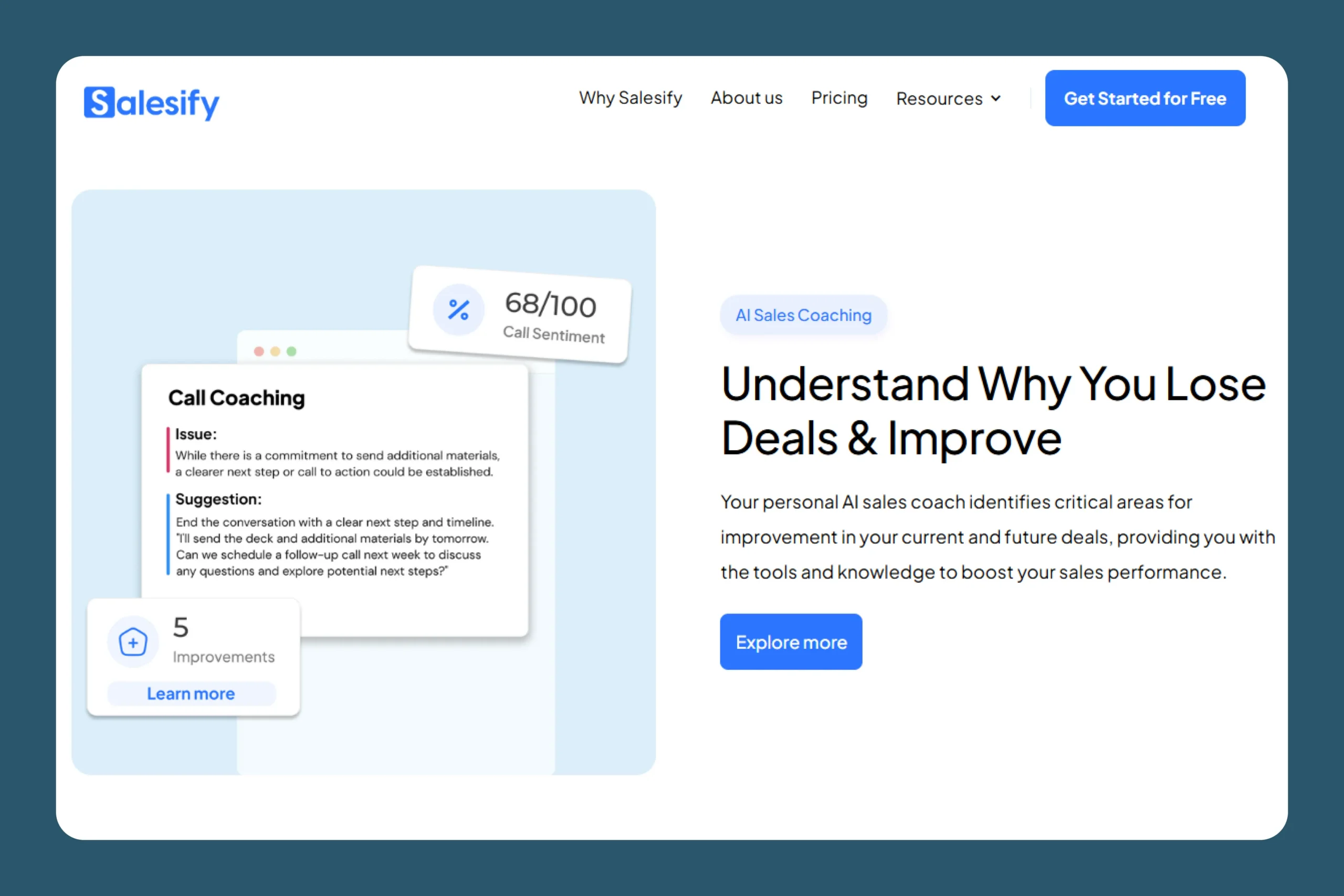 Salesify’s site was designed to be clean, confident, and conversion-focused—matching the fast-paced world of modern B2B sales. The interface highlights product value instantly: from call sentiment to deal insights, everything is just a click away.